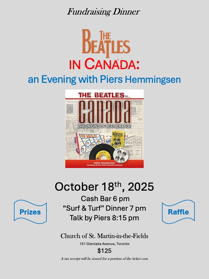 On Saturday, October 18th, at 6 p.m. in our Parish Hall, we are pleased to bring you an evening with world-renowned Beatles expert, author and key member of Management Board – our own Piers Hemmingsen. The evening will feature a full course gourmet surf n’ turf dinner (courtesy of Chef Phil Devine), cash bar, presentation, music and trivia. Funds raised will support the ‘Heat if Forward’ campaign.